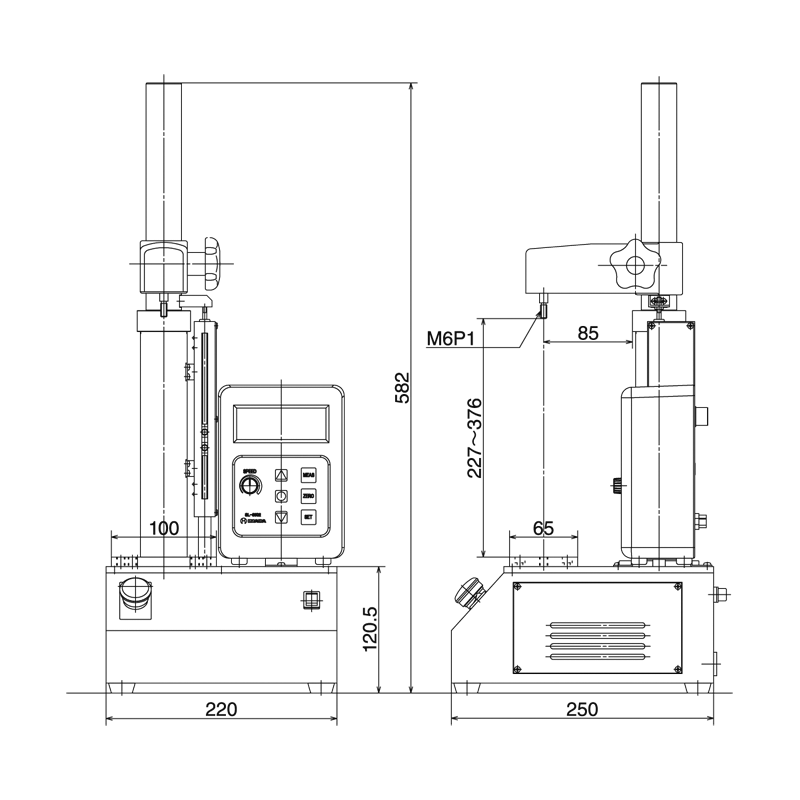 ■標(biāo)準(zhǔn)規(guī)格表| 模型 | SV-55CB-□(* 1) | | 最大負(fù)荷 | 500N | | 負(fù)荷顯示 | 請(qǐng)參閱[負(fù)載范圍規(guī)格表] / [按型號(hào)劃分的負(fù)載范圍組合表] | | 負(fù)載精度 | 各種負(fù)荷范圍JIS 1級(jí)試驗(yàn)機(jī)標(biāo)準(zhǔn)(測(cè)量指令值的±1%以內(nèi)) | | 驅(qū)動(dòng)系統(tǒng) | 直流無(wú)刷電機(jī)速度控制 | | 進(jìn)給速度 | 15-400mm /分鐘 | | 中風(fēng) | 130毫米 | | 樣品安裝跨度 | 227-378毫米 | | 到支柱的距離 | 85毫米 | | 工作臺(tái)尺寸 | 100 x 65毫米(4個(gè)M8內(nèi)螺紋) | | 安全設(shè)備 | 任意設(shè)定上下限裝置 | | 過(guò)載保護(hù) | | 有用的功能 | 峰值保持功能 | | 快進(jìn)功能 | | 自動(dòng)原點(diǎn)返回功能 | | 通過(guò)/失敗判斷功能 | | 外部輸出 | USB(專用軟件)/打印機(jī)輸出(* 2) | | 電源供應(yīng) | AC100V-240V 3A | | 體重 | 約12kg | | 外形尺寸 | W220×D250×H582mm(* 3) | | 標(biāo)準(zhǔn)價(jià)格 | 278,000日元(不含稅) | * 1在□欄中輸入載荷符號(hào)。請(qǐng)參照[各型號(hào)的負(fù)荷范圍組合表]。 * 2可選的數(shù)字打印機(jī)輸出。 * 3所示的高度尺寸為升降軸處于下限位置時(shí)的高度。