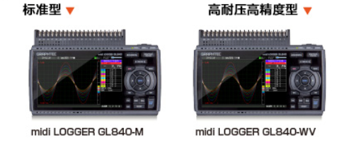 | [高耐壓·高精度]和[標(biāo)準(zhǔn)]的2個產(chǎn)品型號  最適合多通道溫度測量的[標(biāo)準(zhǔn)型 GL840-M]外、增加了適合充電電池的電壓測量和高精度溫度測量的[高耐壓·高精度型 GL840-WV]。
