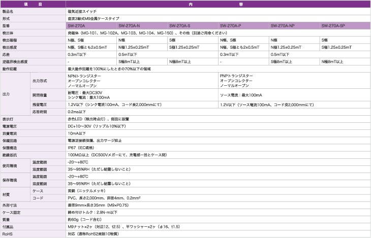 磁性接近開(kāi)關(guān)“SW-270A”